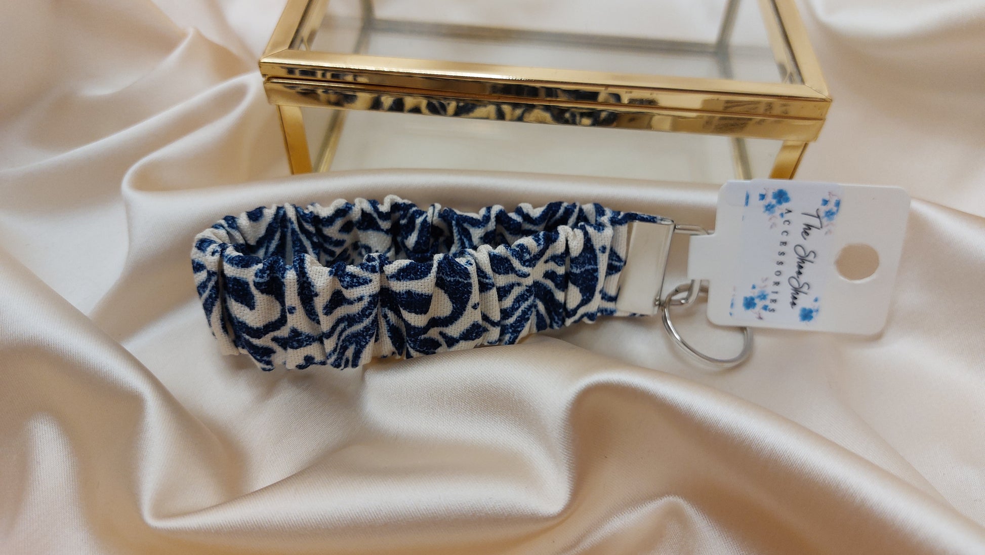 Nyckelband Scrunchie Blue Linnen elastisk med ring