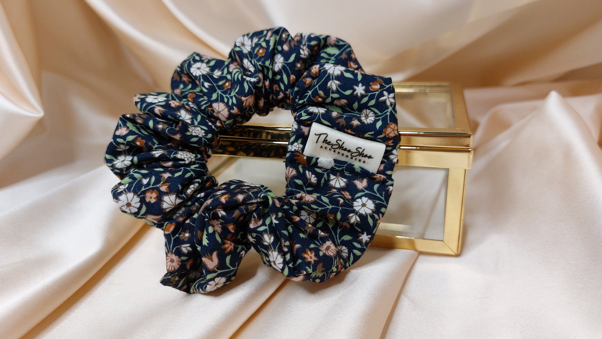 Country Flowers blå ShooShoo Bomull Scrunchie - Handgjord