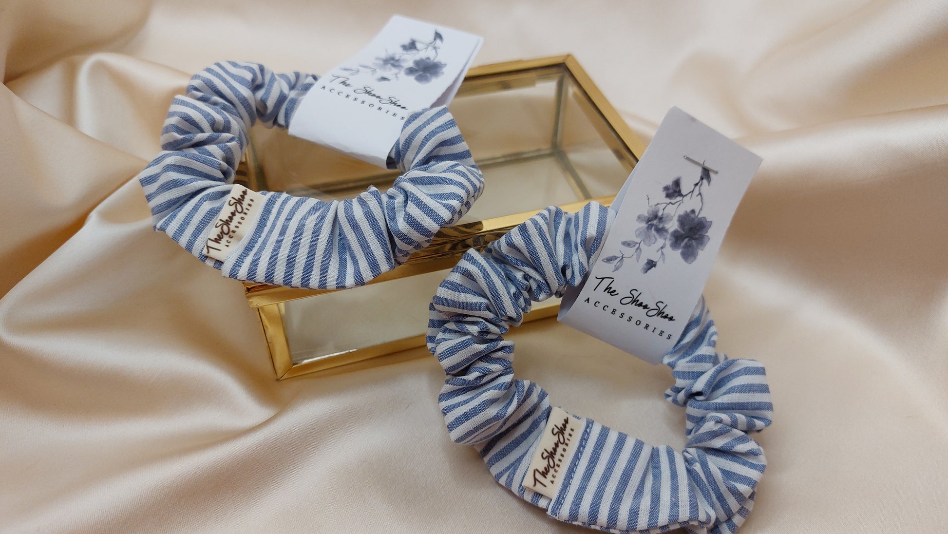 Business Stripes Blue ShooShoo Bomull Scrunchie - Handgjord