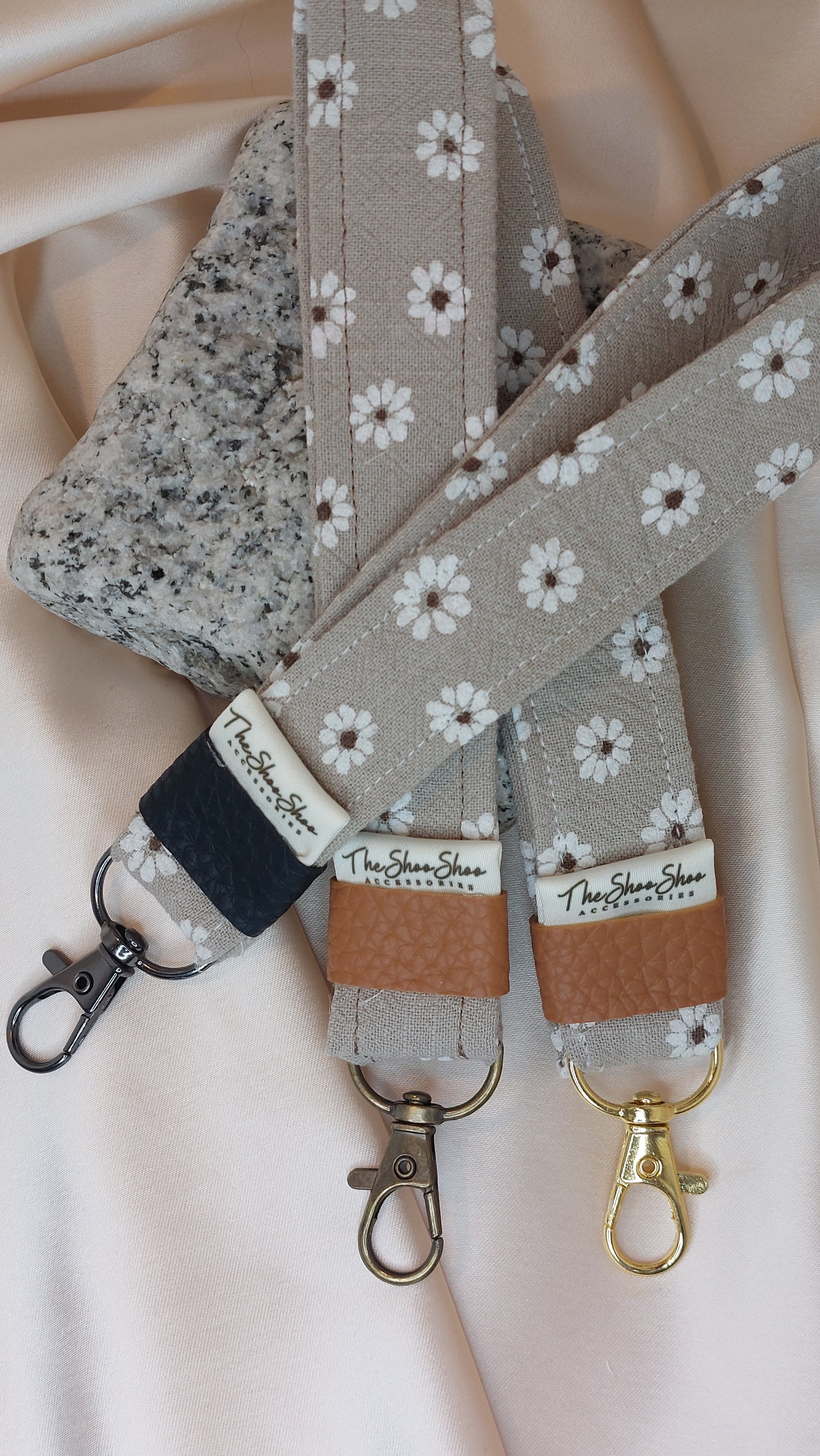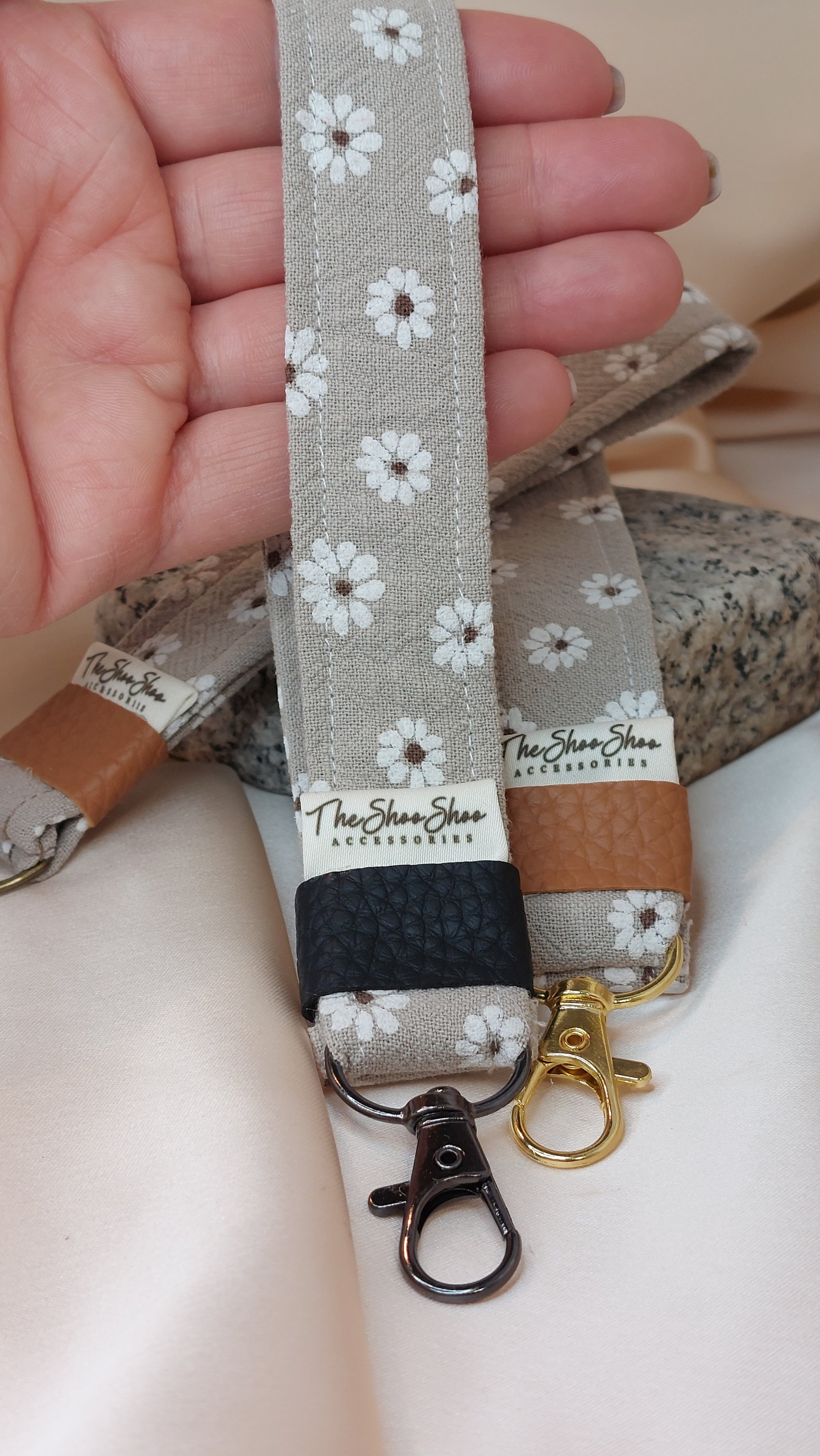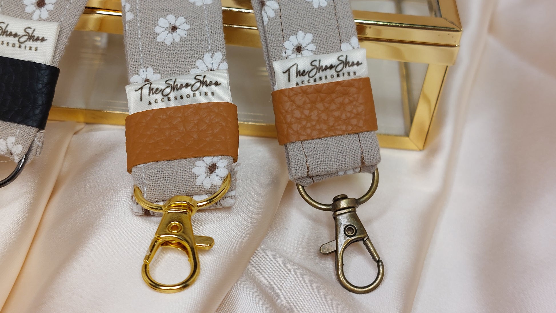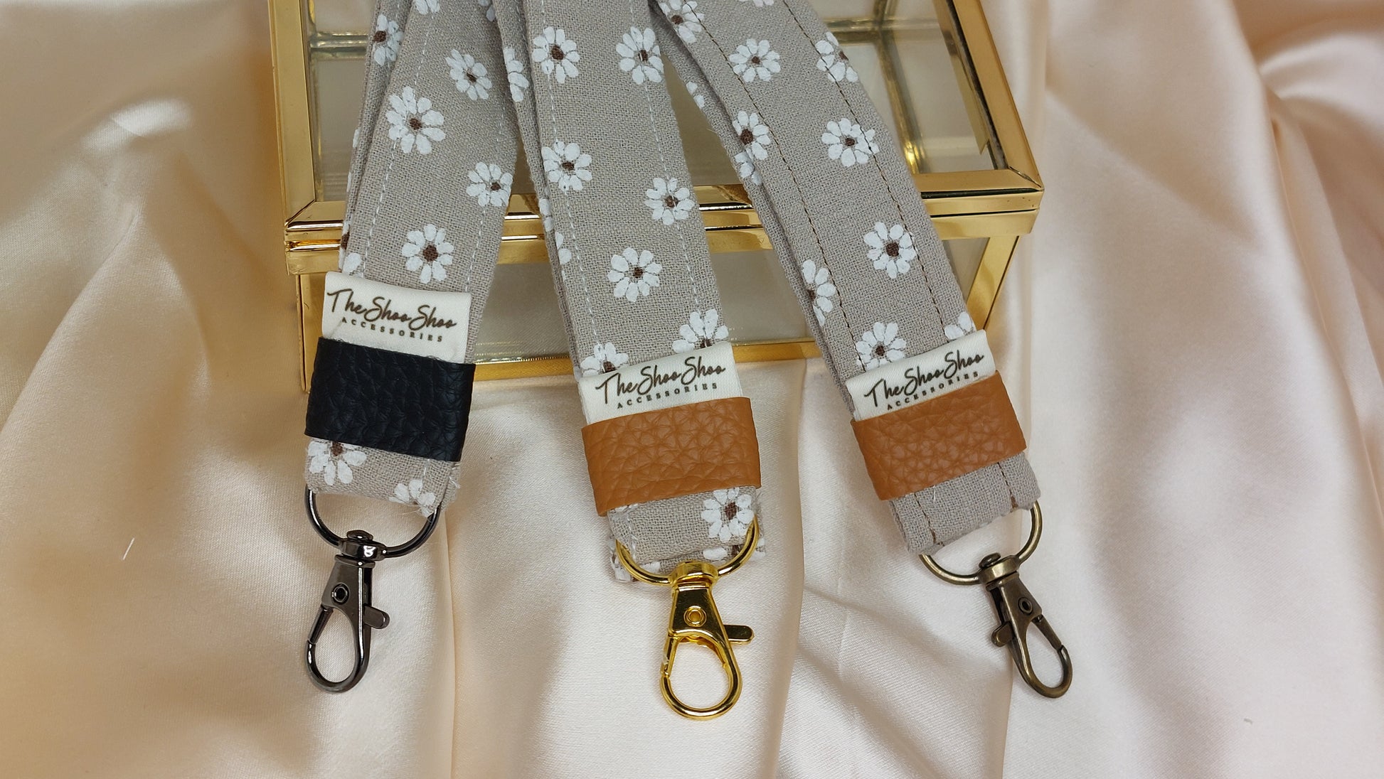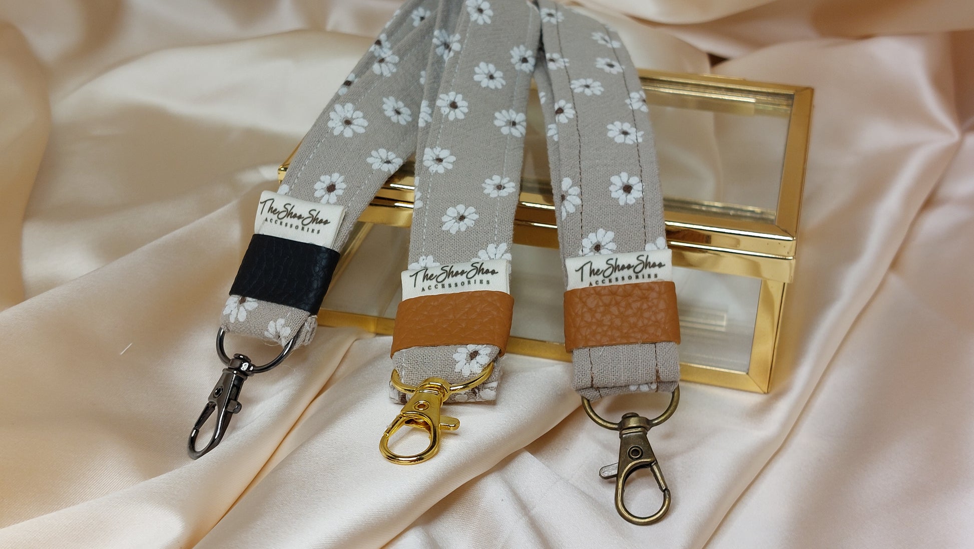 Ge dina nycklar, kort, väska eller id-kort en stilfull uppgradering med våra handgjorda nyckelband i bomullstyg från TheShooShoo Accessories. Dessa nyckelband är skapade med kärlek och omtanke, tillverkade av ett slitstarkt och mjukt bomullstyg i en varm beige ton med ett charmigt mönster.