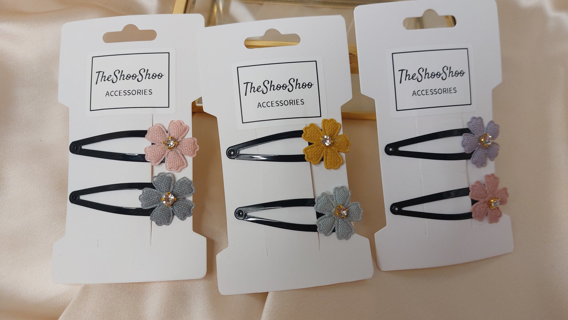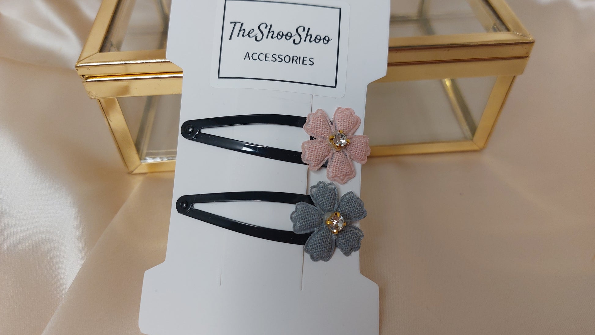 Set med 2 hårspännen som man enkelt snäpper på plats och håller håret bra! Blomman har en fin glittrande strassten i mitten. The Shoo Shoo hårklämmor gör det enkelt att sätta upp lugg eller hålla fast håret. Perfekt att sätta upp mindre hårtestar eller flätor med. Handgjorda och enkla att sätta fast och ta av. Passar till alla från tjockt till tunt hår, barn eller vuxen Levereras i ett set om 2st.
