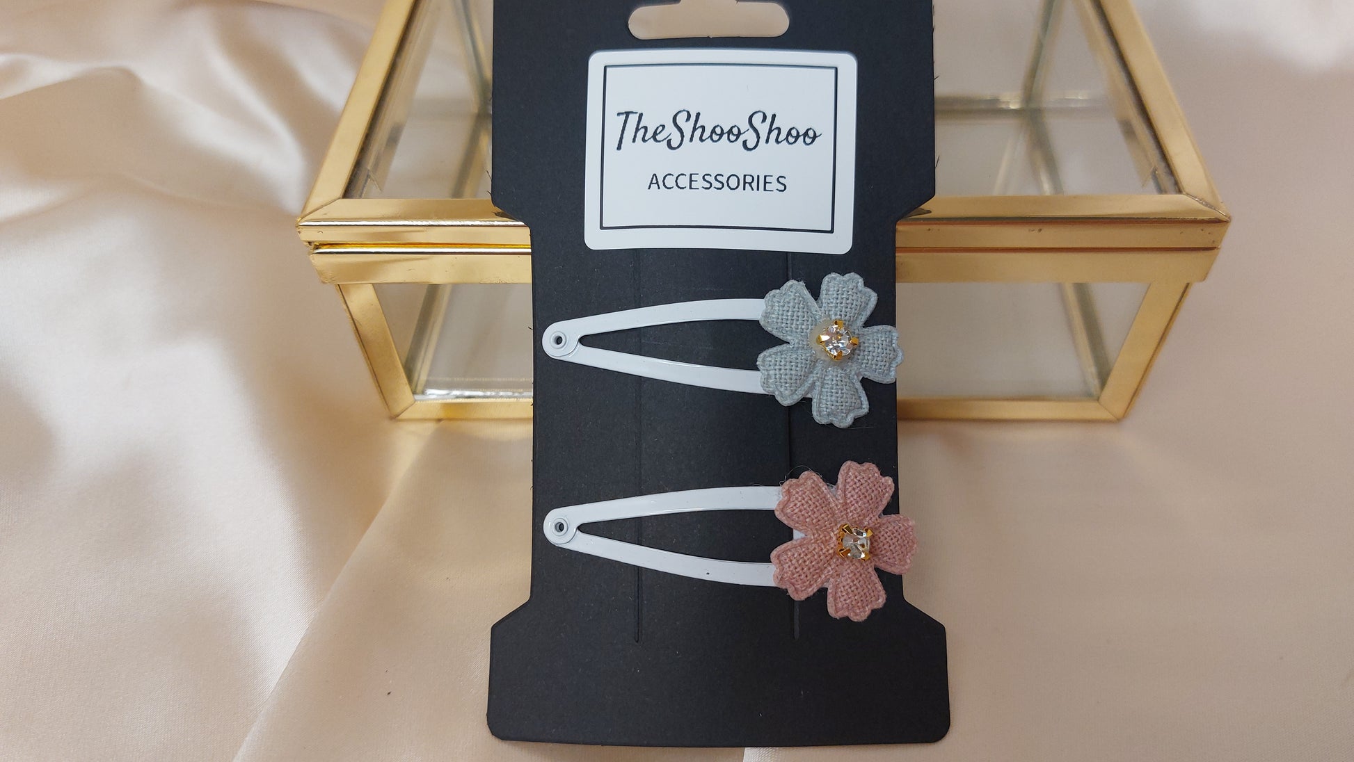 Set med 2 hårspännen som man enkelt snäpper på plats och håller håret bra! Blomman har en fin glittrande strassten i mitten. The Shoo Shoo hårklämmor gör det enkelt att sätta upp lugg eller hålla fast håret. Perfekt att sätta upp mindre hårtestar eller flätor med. Handgjorda och enkla att sätta fast och ta av. Passar till alla från tjockt till tunt hår, barn eller vuxen Levereras i ett set om 2st.