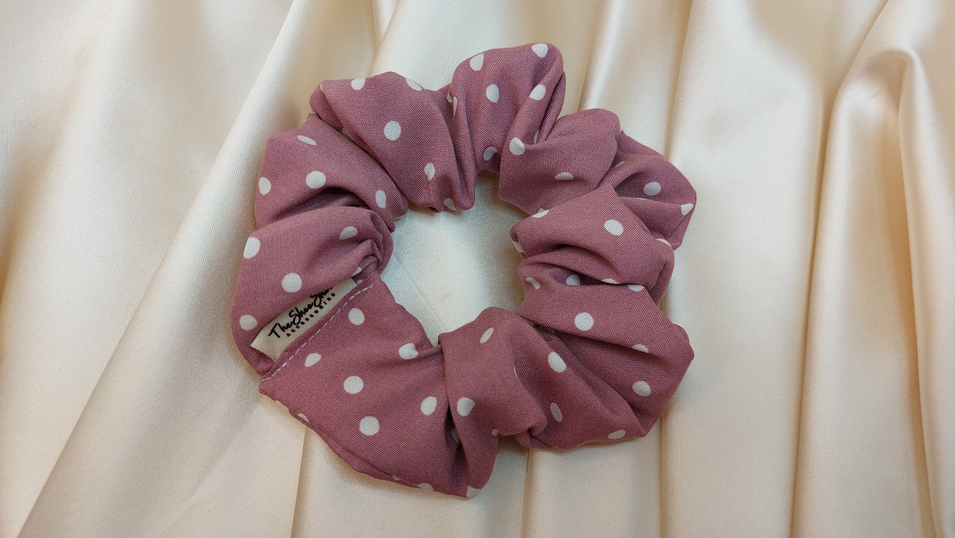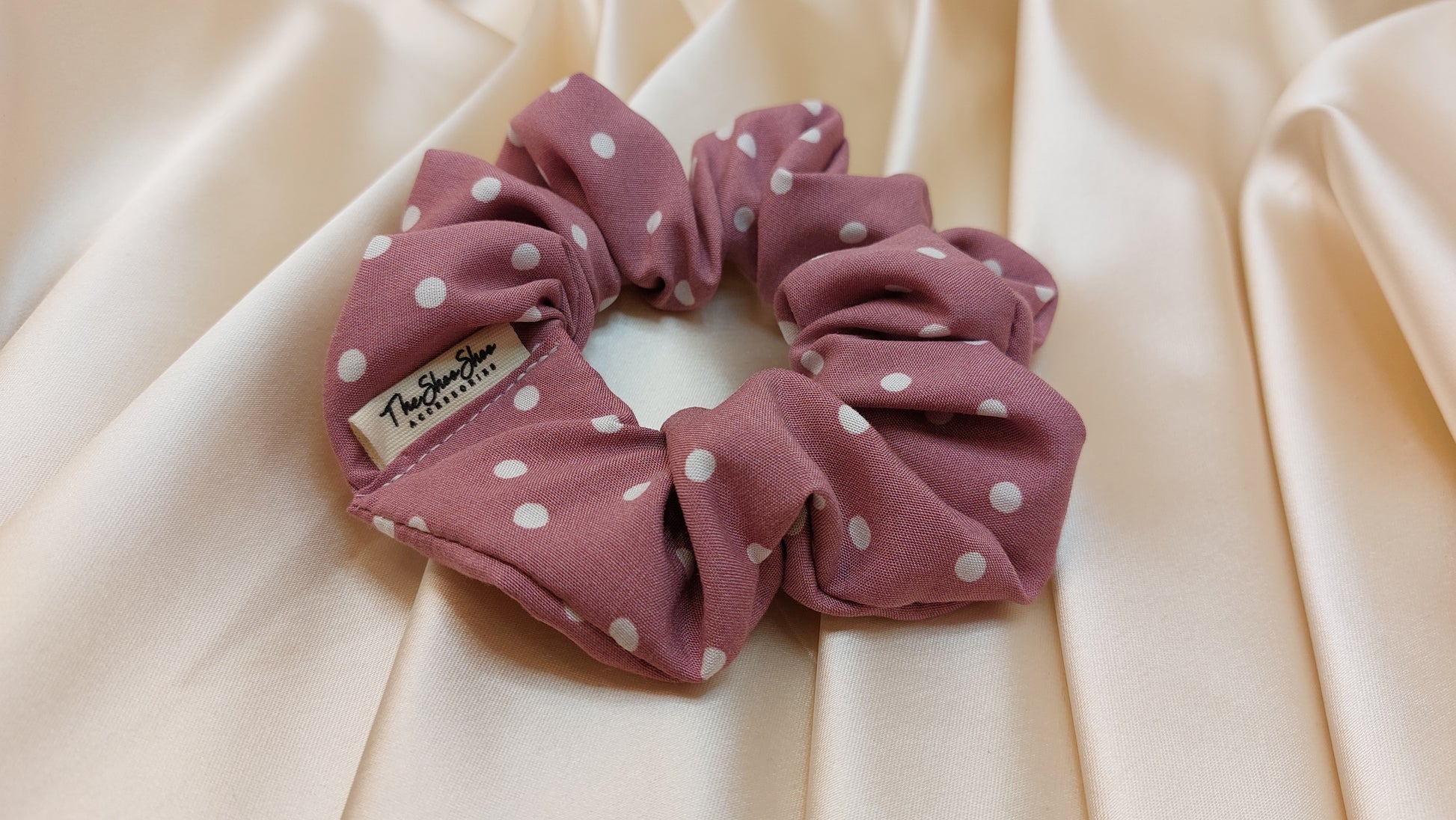 Misty Pink Polkadot ShooShoo Viskos Scrunchie - Handgjord