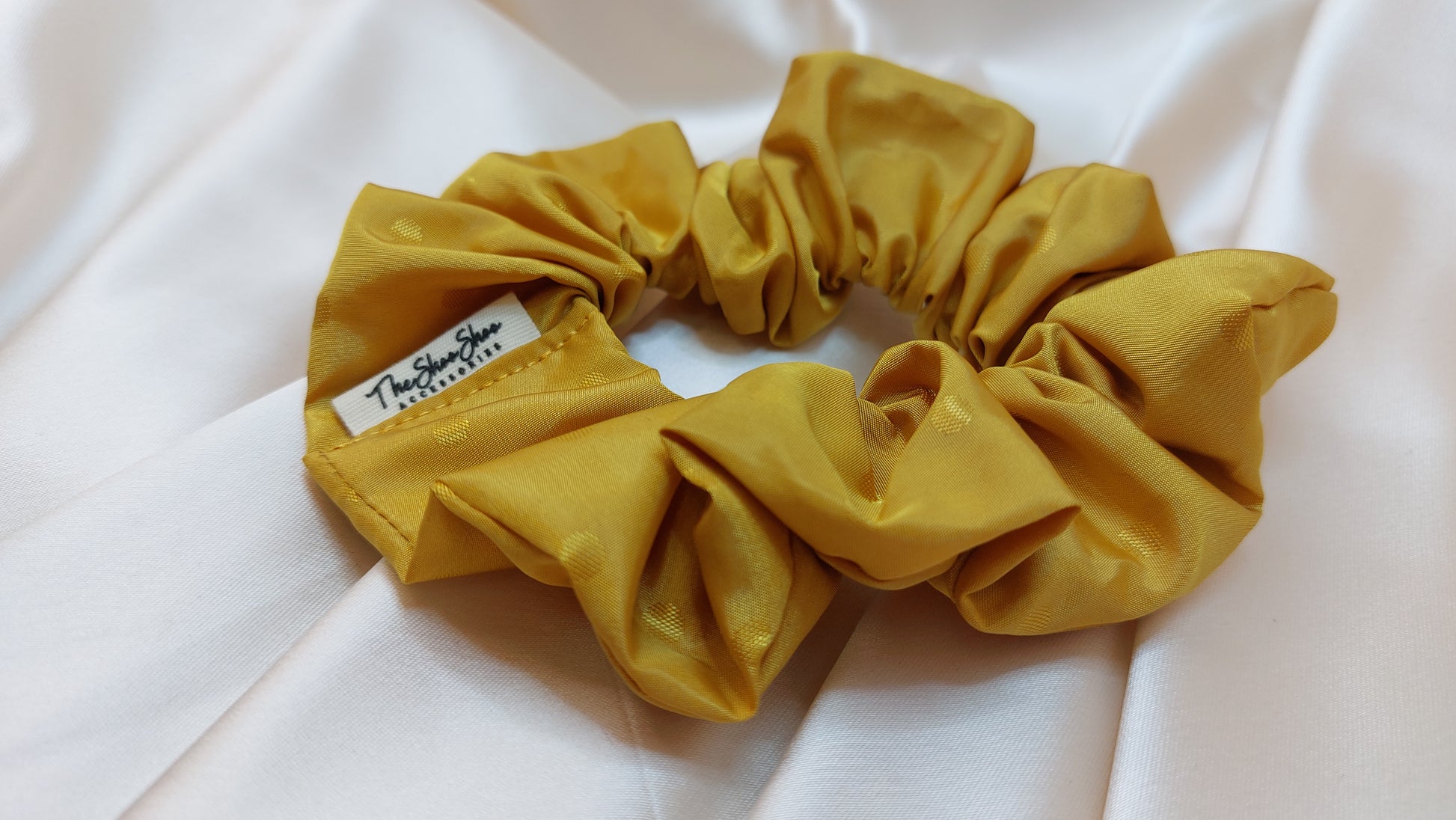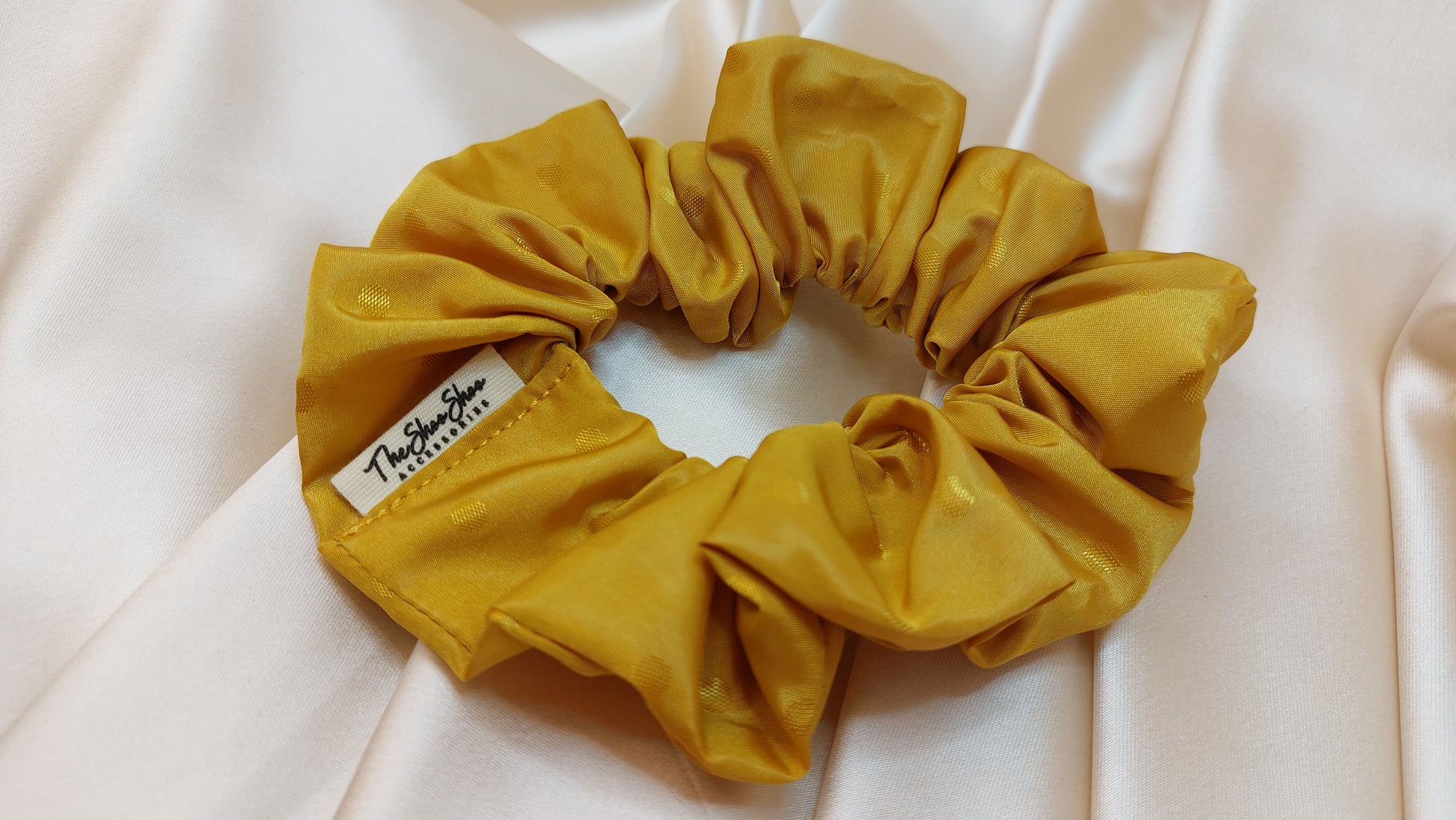 Mustard Dots ShooShoo Taft Scrunchie - Handgjord