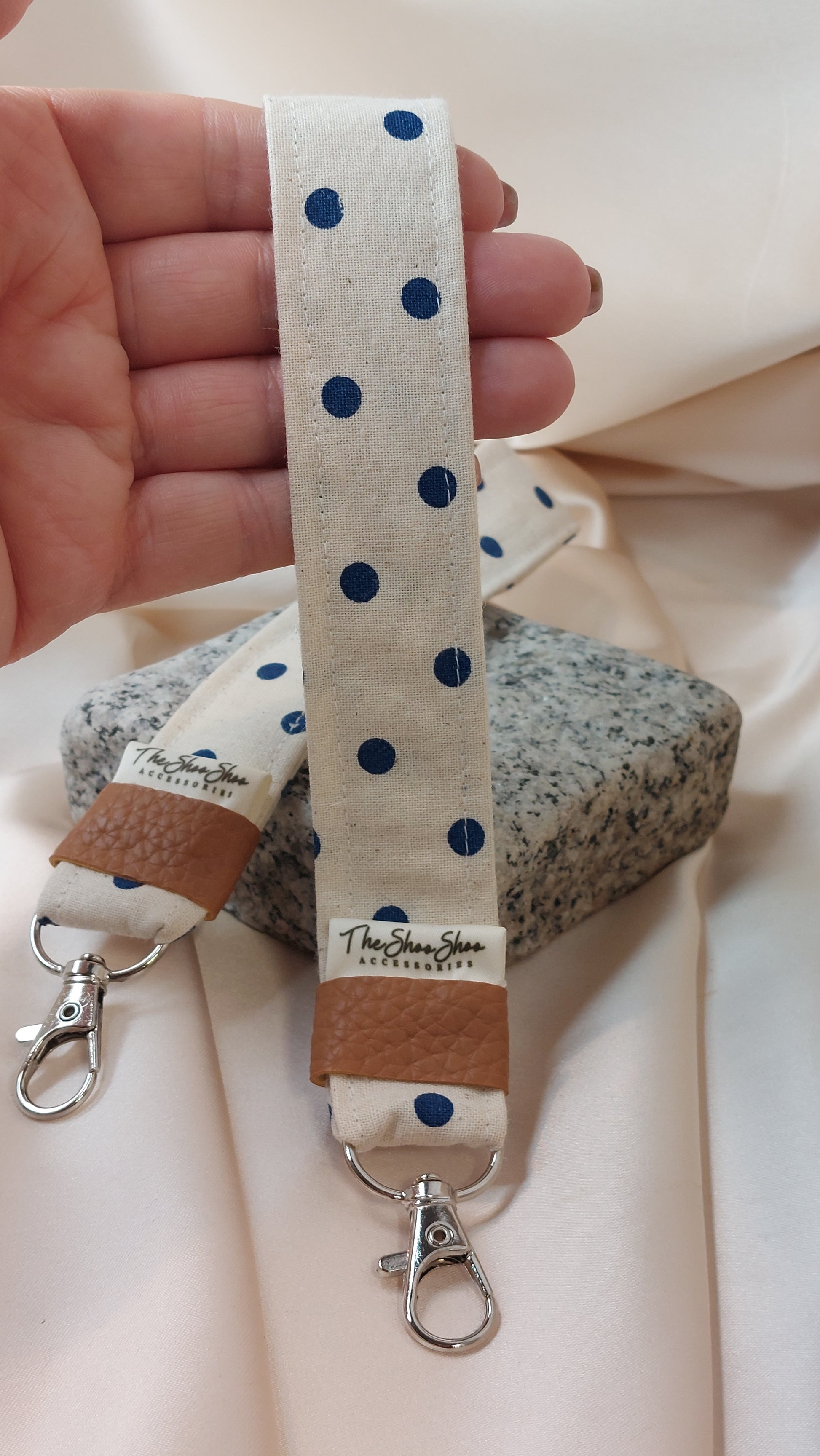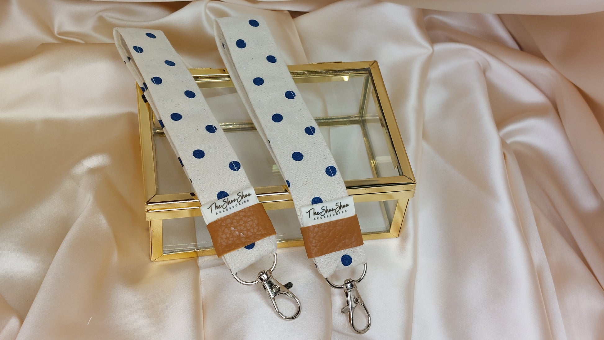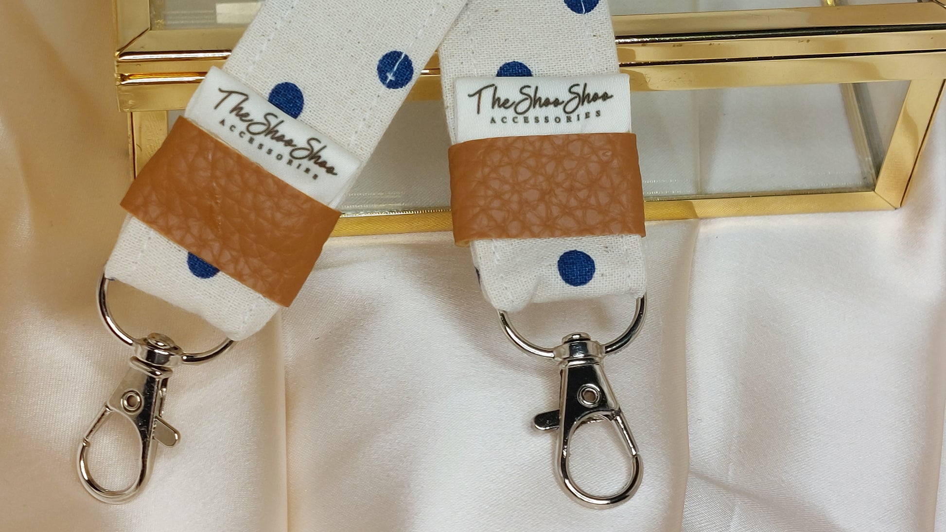 Ge dina nycklar, kort, väska eller id-kort en stilfull uppgradering med våra handgjorda nyckelband i bomullstyg från TheShooShoo Accessories. Dessa nyckelband är skapade med kärlek och omtanke, tillverkade av ett slitstarkt och mjukt bomullstyg i en varm beige ton med ett charmigt mönster.