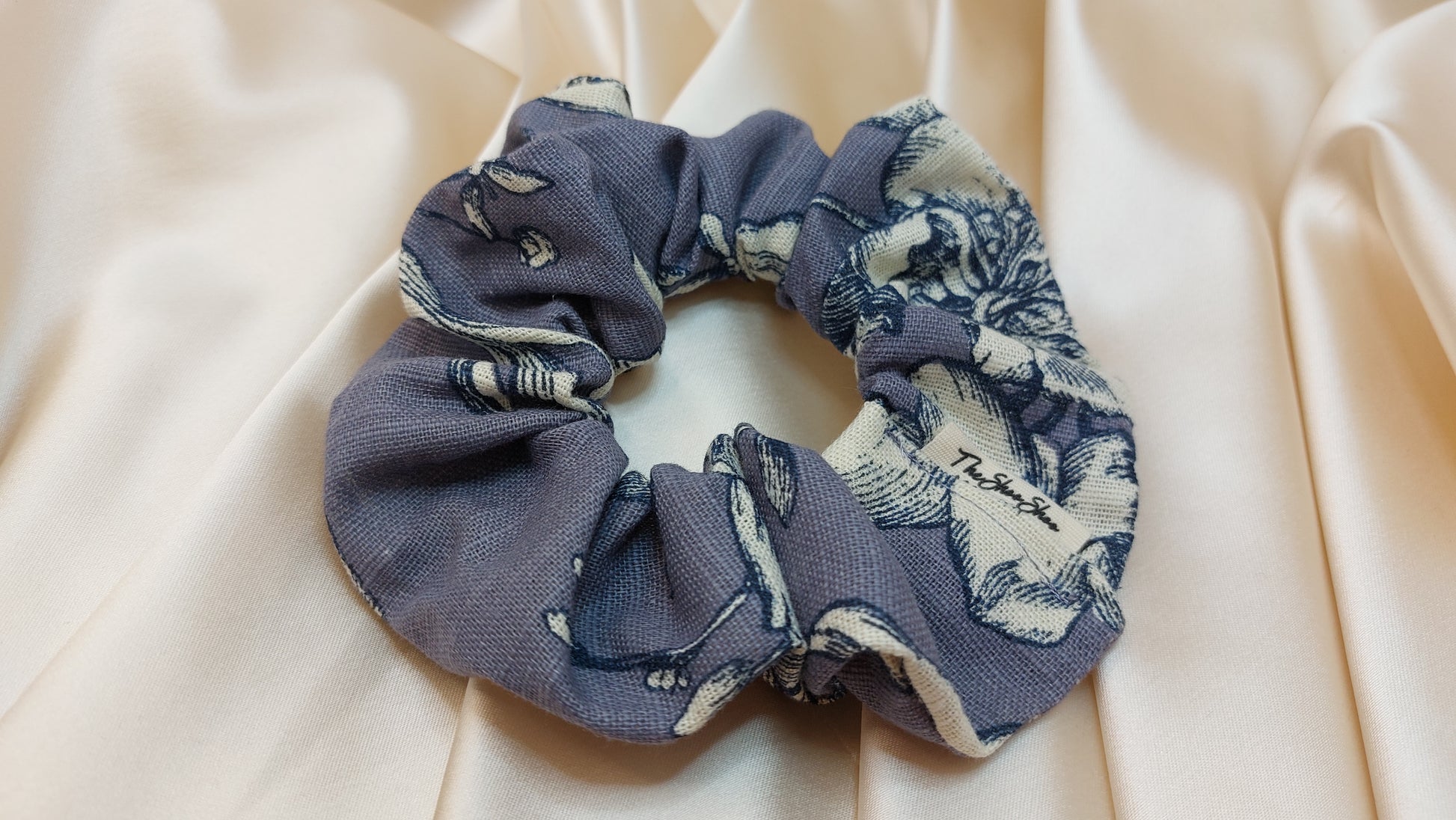Alla Shoo Shoo scrunchies är klippta och sydda för hand. Det platta elastiska gummibandet inuti har knutits för hand. Passformen på ShooShoo-scrunchies gummiband görs större än på vanliga scrunchies för att passa bättre på handleden utan att strama åt, men också för att hålla alla sorters hår bättre.