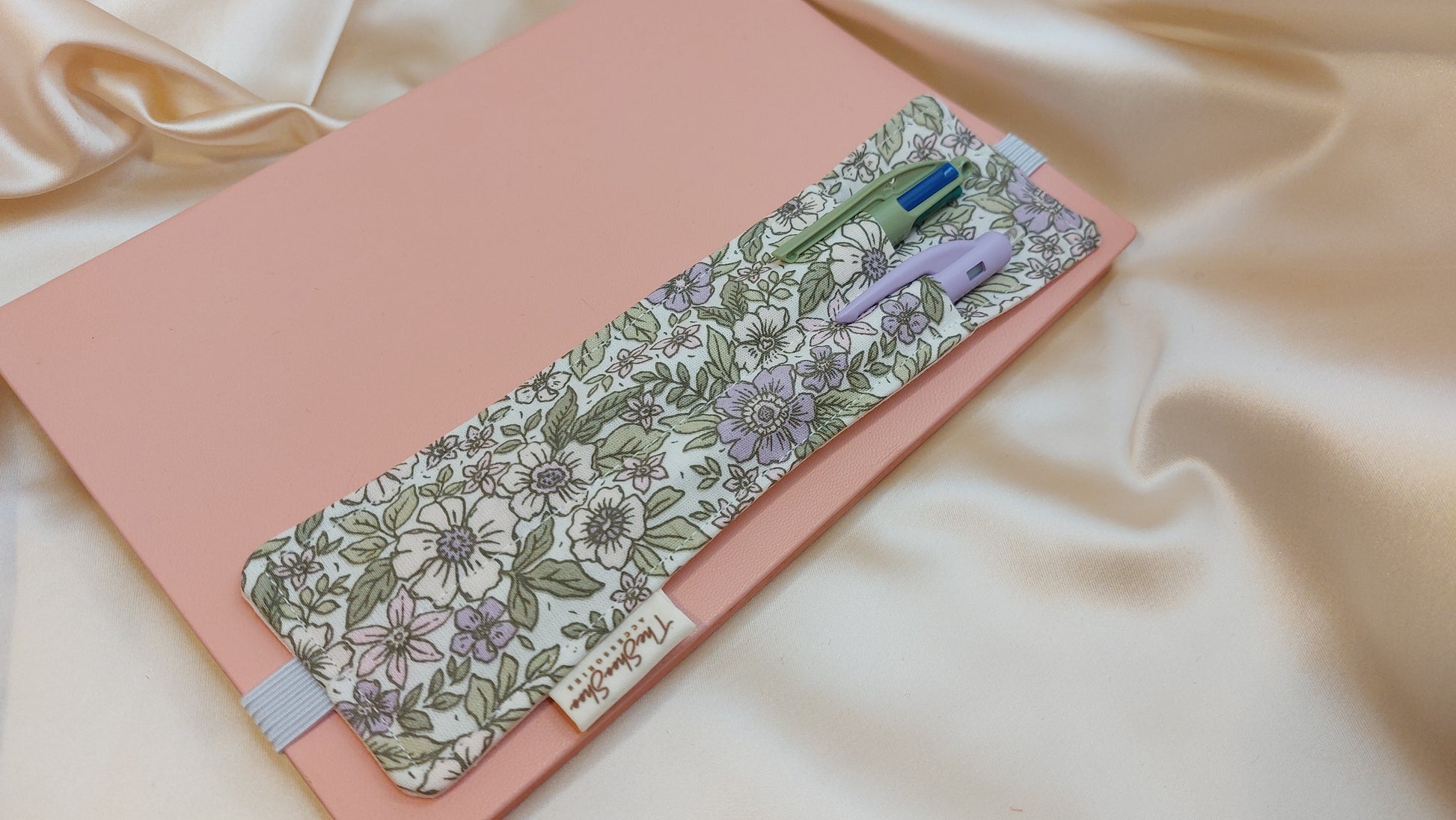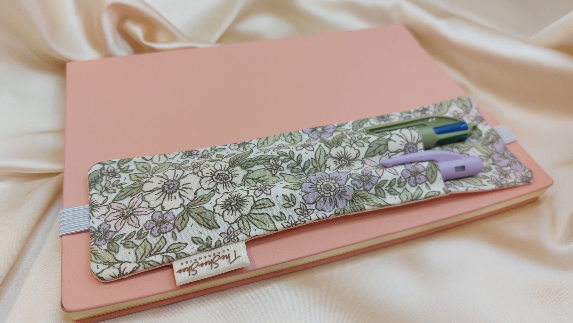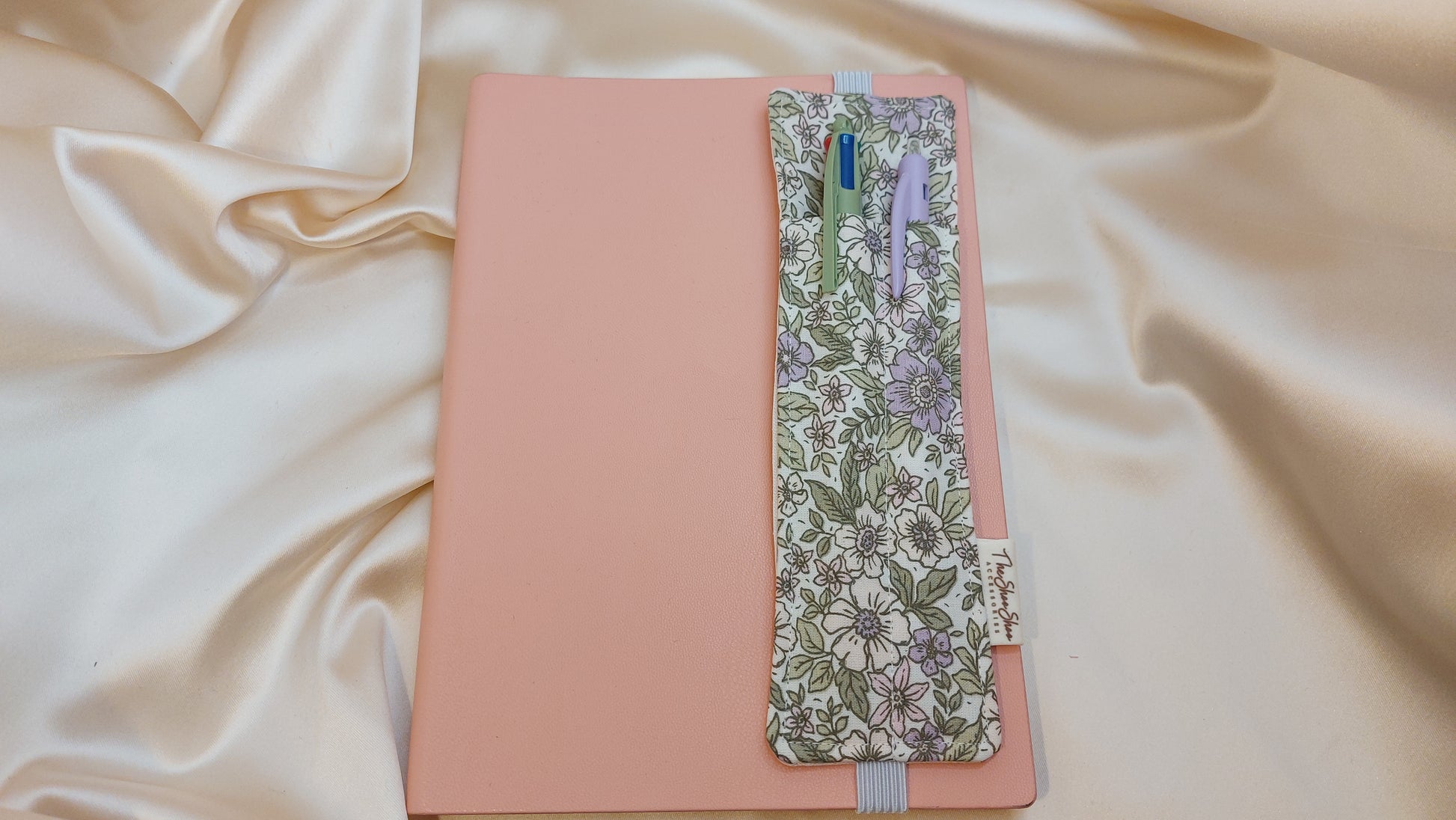 Det slitstarka elastiska bandet gör att pennhållaren sitter stadigt runt anteckningsböcker i A5-format, men den kan även passa till A4 utan att glida eller tappa formen över tid. Om du vill använda den till A4-storlek så rekommenderar vi ett att omslaget är stadigt för att pennhållaren ska kunna ligga platt; eftersom gummibandet då är mer utdraget och kan dra något i omslaget så att det böjs. Den bästa storleken är A5 för denna pennhållare.